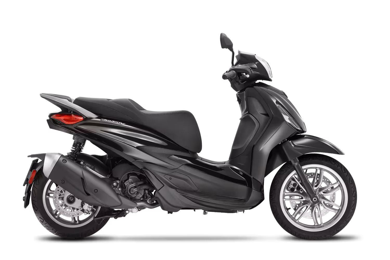 Díky vysokým kolům z lehkých slitin - 16„ vpředu a 14“ vzadu - Beverly poskytuje pohodlí a stabilitu. O bezpečnost se stará výkonný brzdový systém s 300mm poloplovoucím předním kotoučem a dvoukanálovým ABS.