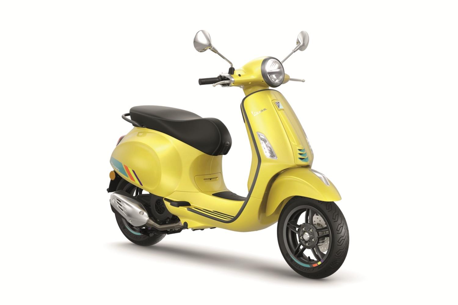 Vespa Primavera S Vás zaujme chromovanými detaily a grafitovými šedými konturami. Její živá barevná paleta, díky níž je tento skútr v davu nepřehlédnutelný, jí dodává ten správný šmrnc.