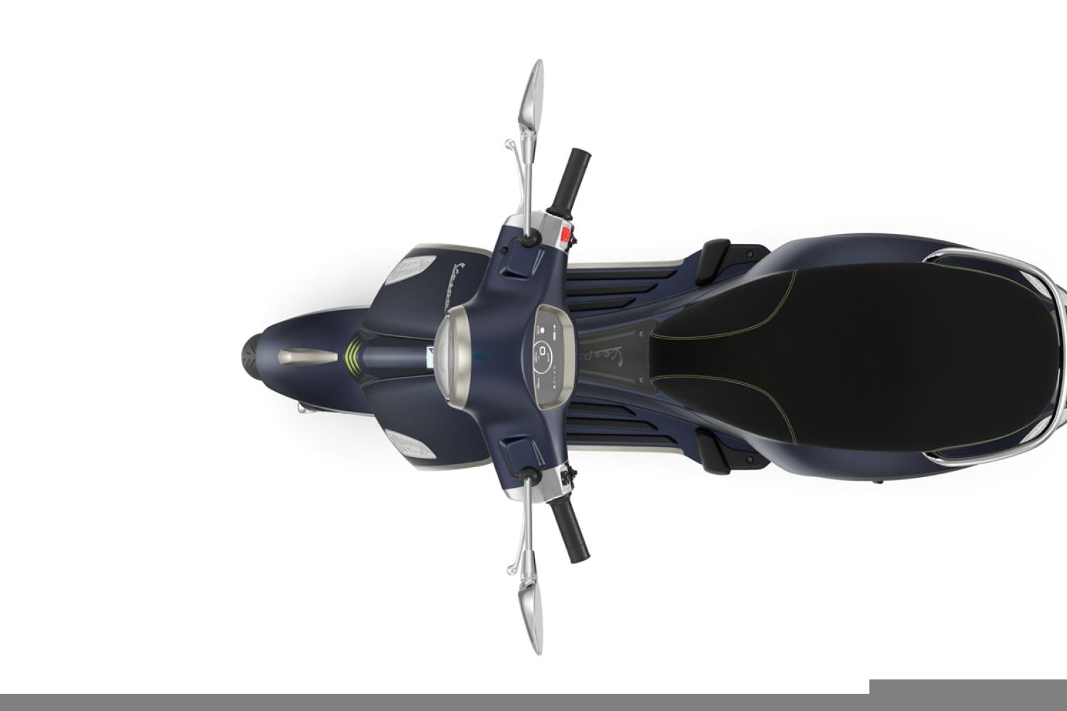 Vespa Primavera Tech nabízí maximální pohodlí díky vysoce kvalitním materiálům a dálkovému otevírání sedla, které umožňuje odemknout skútr na dálku. Pohodlné sedadlo má elegantní šedé a zelené prošívání po celé přední i zadní části.