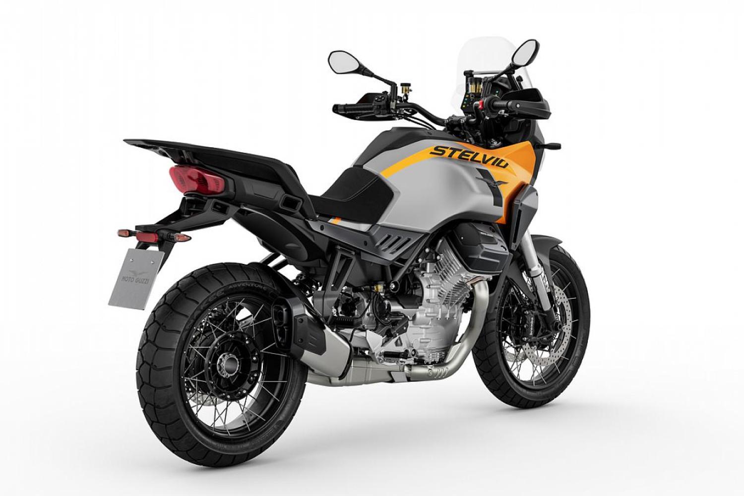 Stelvio je poháněno motorem V-Twin "Compact Block" Euro5+ od Moto Guzzi s hřídelovou převodovkou. Motor o objemu 1 042 cm3 poskytuje maximální výkon 115 k při 8 700 ot/min a maximální točivý moment 105 Nm při 6 750 ot/min.
