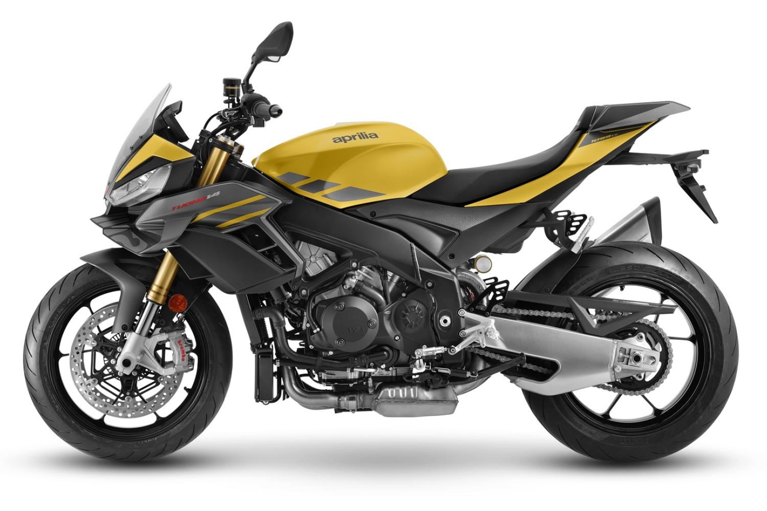 Aprilia Tuono V4 kombinuje sportovní výkon s výjimečnou ovladatelností i na běžné silnici. Díky motoru V4 E5+ o výkonu 180 koní, sebevědomé ergonomii, integrovaným křídlům pro lepší stabilitu a přizpůsobitelnému balíčku elektroniky a-PRC je to opravdu vynikající stroj.