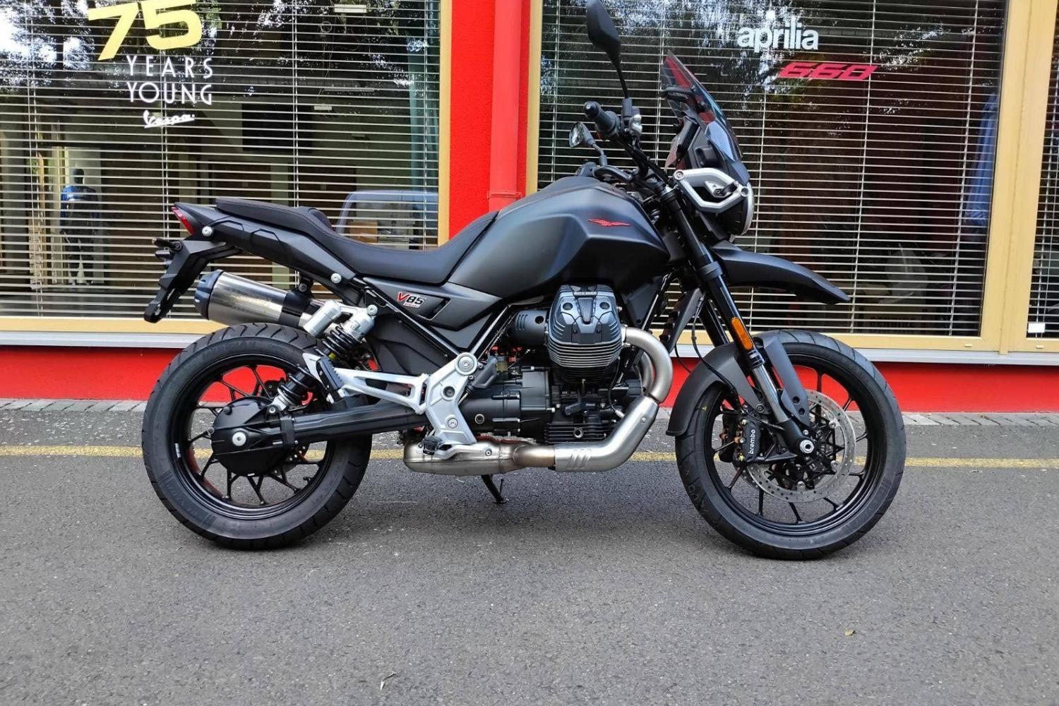 Moto Guzzi V85 Strada charakterizuje dvouválcový vzduchem chlazený motor do V a nezaměnitelné denní svícení se siluetou orla které představuje DNA značky Moto Guzzi. Díky 5" TFT ovládacímu panelu je správa tří jízdních režimů s nastavením Sport, Road a Rain jednoduchá a nabízí optimální řešení pro jakékoli podmínky.