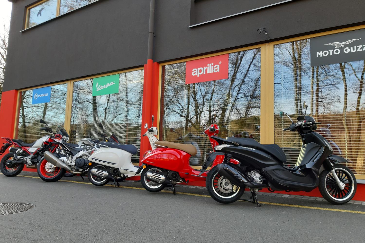 Specializujeme se na prodej motocyklů a skútrů Aprilia, Vespa, Piaggio a Moto Guzzi a nabízíme také široký sortiment originálního i neoriginálního příslušenství. Zákazníkům poskytujeme odborné poradenství a individuální přístup při výběru nového i ojetého motocyklu nebo skútru.