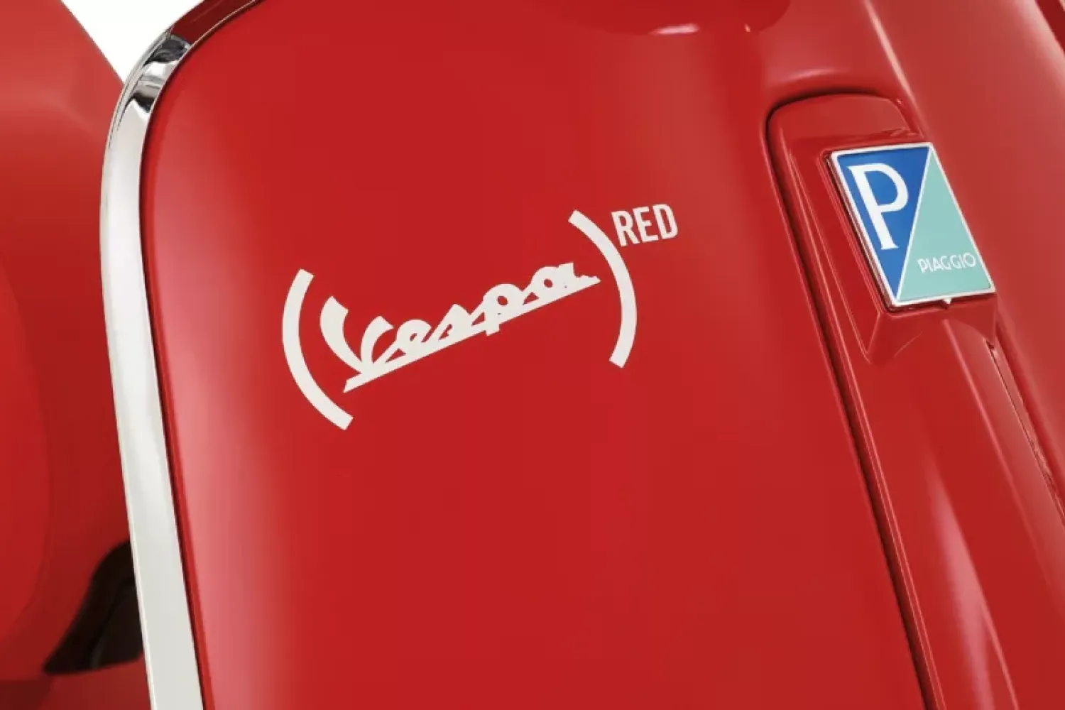 Červená barva zahaluje ikonický tvar Vespy ve všech aspektech, od rámu přes ráfky až po ergonomické sedlo. RED symbolizuje efektivitu a agilitu, zatímco její motor i-get splňující normu Euro 5+ zajišťuje spolehlivou a plynulou jízdu, takže je ideální pro únik z městských silnic