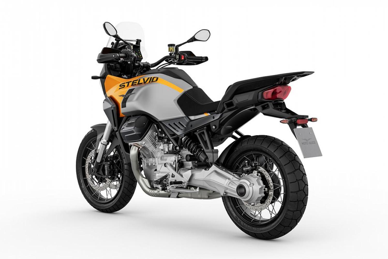 Stelvio je poháněno motorem V-Twin "Compact Block" Euro5+ od Moto Guzzi s hřídelovou převodovkou. Motor o objemu 1 042 cm3 poskytuje maximální výkon 115 k při 8 700 ot/min a maximální točivý moment 105 Nm při 6 750 ot/min.