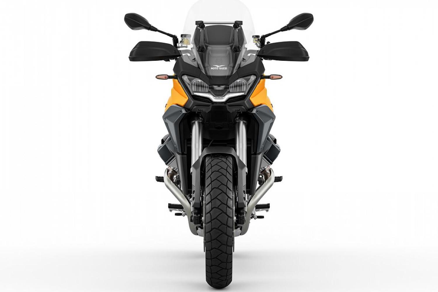 5" barevný displej a pět přizpůsobitelných jízdních režimů včetně režimu jízdy v terénu. Dostanete také Full LED světlomety s DRL, přisvětlení do zatáček, LED směrovky, náklonové ABS a Moto Guzzi Traction Control a tempomat.