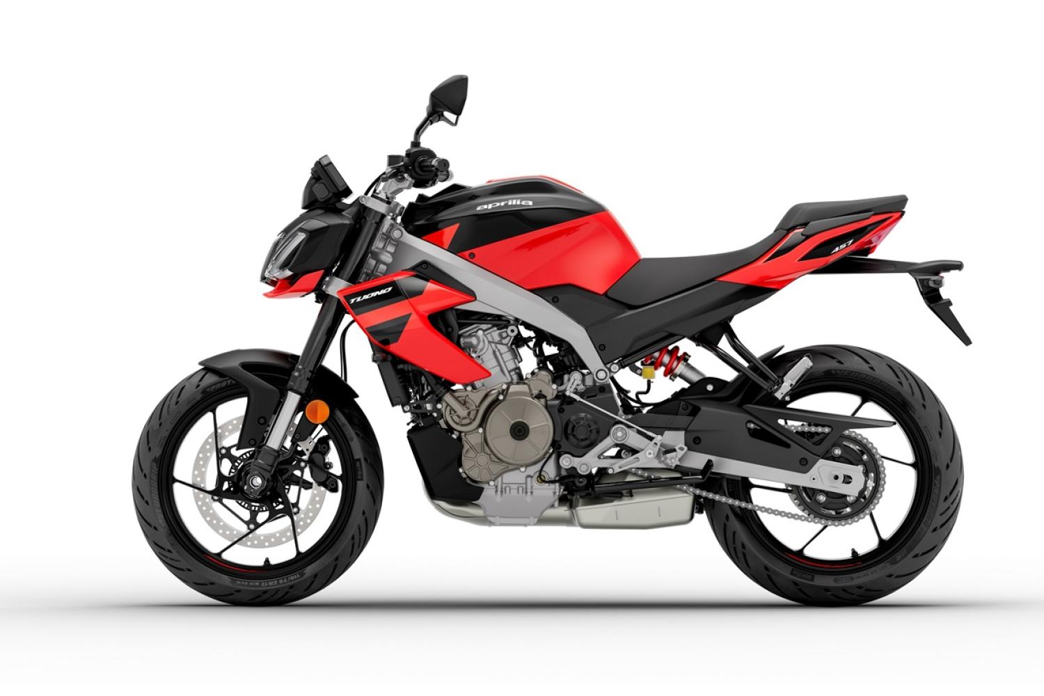 Aprilia Tuono 457 přináší agresivní, minimalistický vzhled, vzpřímenou jízdní pozici a nejlepší poměr výkonu a hmotnosti ve své třídě. Je vybavena dvouválcovým motorem, hliníkovým rámem a špičkovou sadou elektroniky, která zahrnuje Ride-by-Wire, kontrolu trakce a tři jízdní režimy.